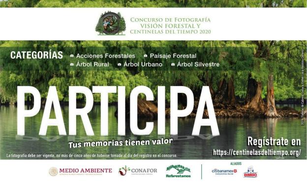 Ciudad de México, 1 de septiembre de 2020.- La Comisión Nacional Forestal (Conafor) y la organización civil Reforestamos México, lanzaron hoy la edición 2020 del Concurso Nacional de Fotografía “Visión Forestal y Centinelas del Tiempo”. Podrán participar mujeres y hombres, aficionados o profesionales de la fotografía, de nacionalidad mexicana, residentes en la República Mexicana.