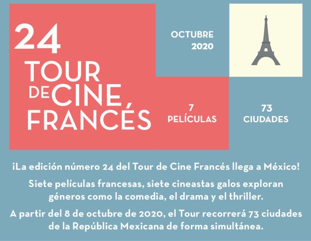 El Tour de Cine Francés es una muestra itinerante que presenta de forma simultánea la mejor selección de cine francés contemporáneo, en 73 ciudades de la República Mexicana, a partir del 8 de octubre de 2020.