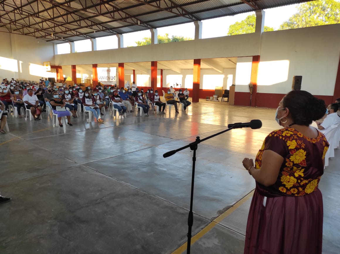 Ixhuatán Oaxaca- 13 de diciembre del 2020/ Gloria Sánchez acompañó este sábado al dirigente estatal del Movimiento de Regeneración Nacional (MORENA) Sesul Bolaños López a una asamblea informativa que se llevó a cabo en esta cabecera municipal. Durante el encuentro con la militancia y la dirigencia local, Bolaños López hizo un llamado a la unidad para consolidar el proyecto de la Cuarta Transformación que llevó al presidente Andrés Manuel López Obrador a la Presidencia del País.