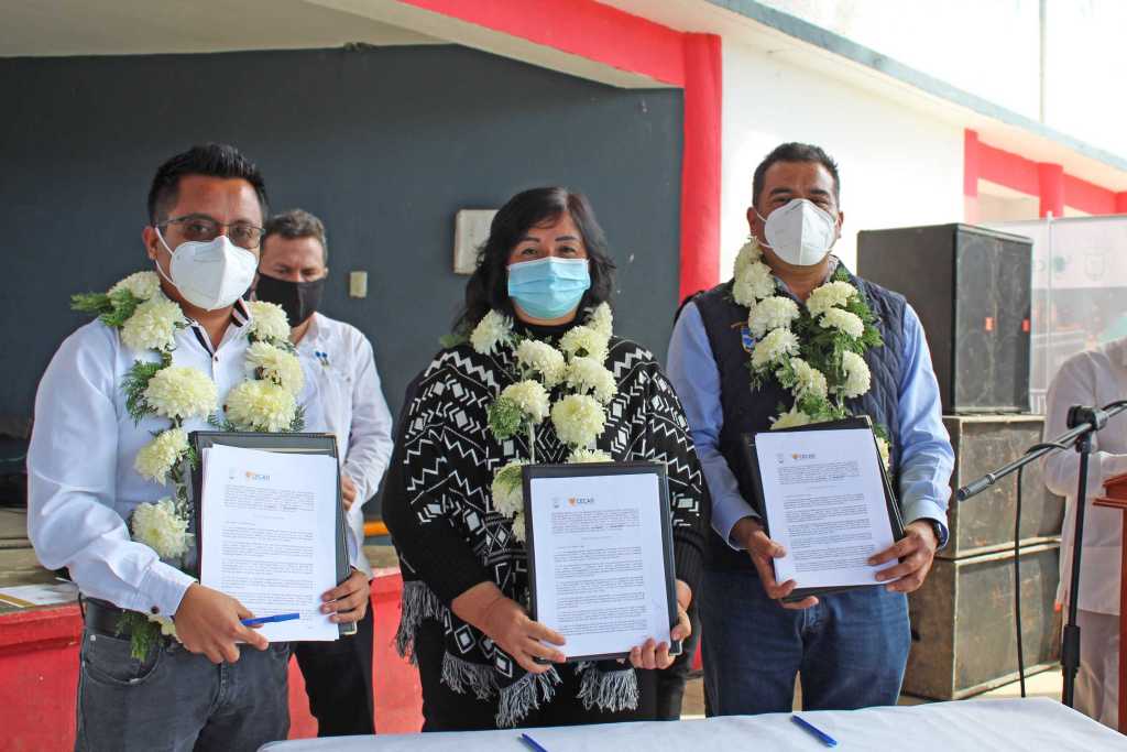 Santa María Chilchotla, Oax. Diciembre, 2020. Una sede del Centro de Educación, Continua, Abierta y a Distancia (CECAD), de la Universidad Autónoma “Benito Juárez” de Oaxaca (UABJO), fue inaugurada en Santa María Chilchotla en un acto protocolario encabezado por el Dr. Eduardo Bautista Martínez, Rector UABJO; la Mtra. Irma Yolanda Ortiz Acosta, Directora del CECAD; y el Arq. Salvador Martínez Escobedo, Presidente Municipal.