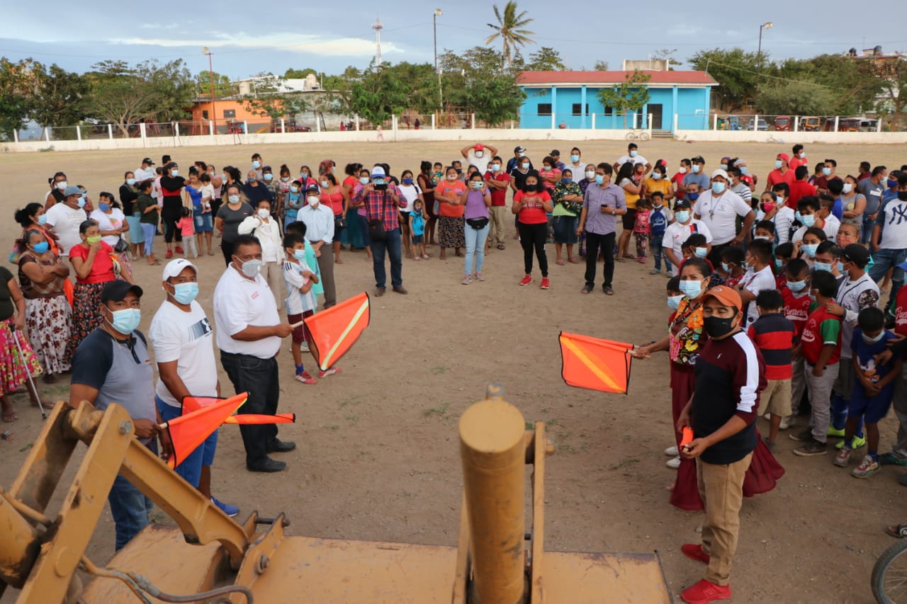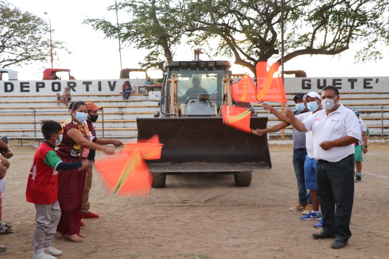 Juchitán Oaxaca/ Enero 7 del 2021. Gracias a las gestiones de la diputada juchiteca Gloria Sánchez el sueño de los deportistas, niños y jóvenes, se hará realidad al contar próximamente con una cancha con empastado sintético que brindará mejores condiciones para la practica del deporte en la unidad deportiva Neza guete’.