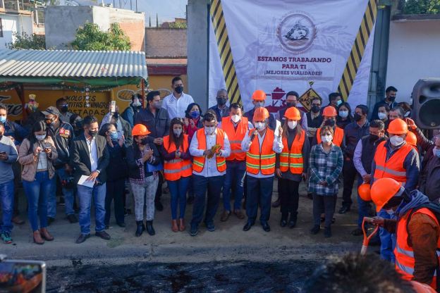 Oaxaca de Juárez, Oax. 17 de enero del 2022. Después de permanecer varios meses en el olvido las vialidades del municipio de Oaxaca de Juárez, el día de hoy, el edil capitalino Francisco Martínez Neri, en punto de las 8:00 horas, dio el banderazo que inaugura el programa “El bacheo va”, como parte del Plan de los 100 días, denominado “Oaxaca al 100”, y que tiene como propósito mejorar las vialidades en el municipio. La avenida La Paz, de la agencia de San Juan Chapultepec, fue la sede de este importante acto y será la primera en recibir a este programa.