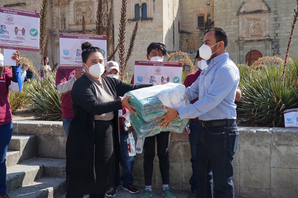 El regidor de Salud, Sanidad y Asistencia Social, Pablo Alberto Ramírez Puga Domínguez, acompañado de la regidora de Seguridad Ciudadana y Movilidad y de Agencias y colonias, Claudia Tapia Nolasco, y de la regidora de Desarrollo Económico y Mejora Regulatoria, Irasema Aquino González, puntualizó que los cubrebocas y el gel antibacterial fueron donados por diferentes empresarios de la Asociación de Hoteles de Oaxaca, y por el equipo de los “Diablos Rojos”, así como de diferentes regidurías, lo que no representará un gasto mayor para el municipio de Oaxaca de Juárez.