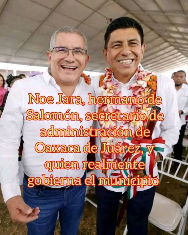 El solito se llenó de mierda. Se llenó de mierda, porque toda su familia está en su gobierno y su hermano Noé Jara un reconocido hampón y delincuente está como Secretario de Gobierno del ayuntamiento que encabeza otro mierda que responde al nombre de Raymundo Chagoya Villanueva, otro hamponcete y corrupto que ha colocado a sus dos compadres, a Luis Héctor Rodríguez Jiménez como Tesorero y al otro Carlos facundo Alcocer Pérez como Secretario de Obras Públicas y Desarrollo Urbano del Municipio de Oaxaca de Juárez. Dos cargos donde está la billetiza.