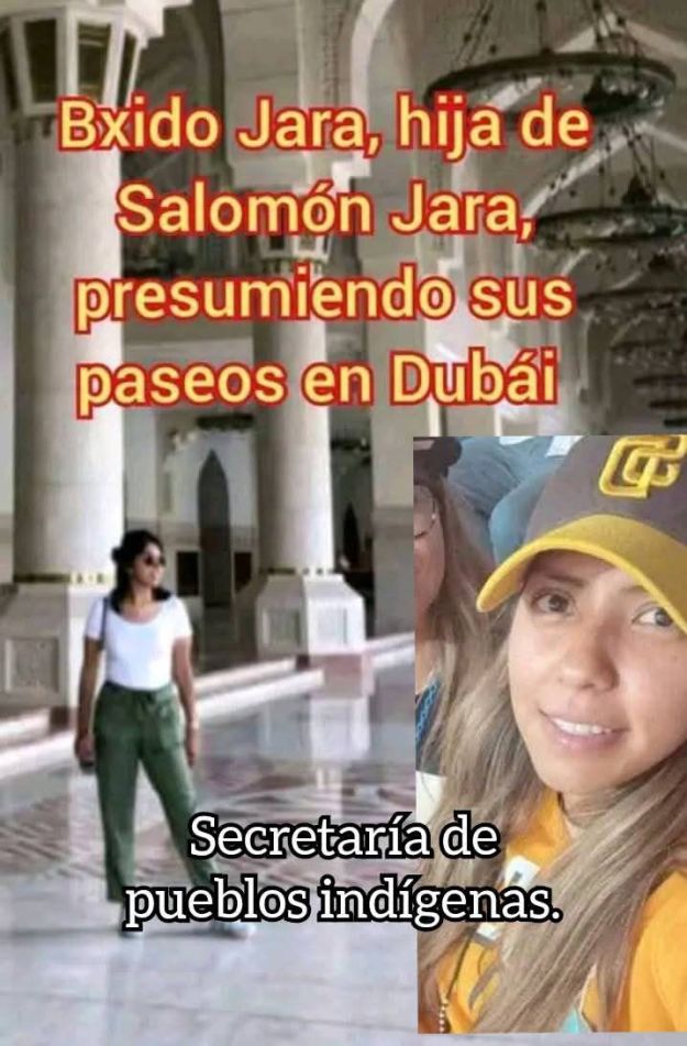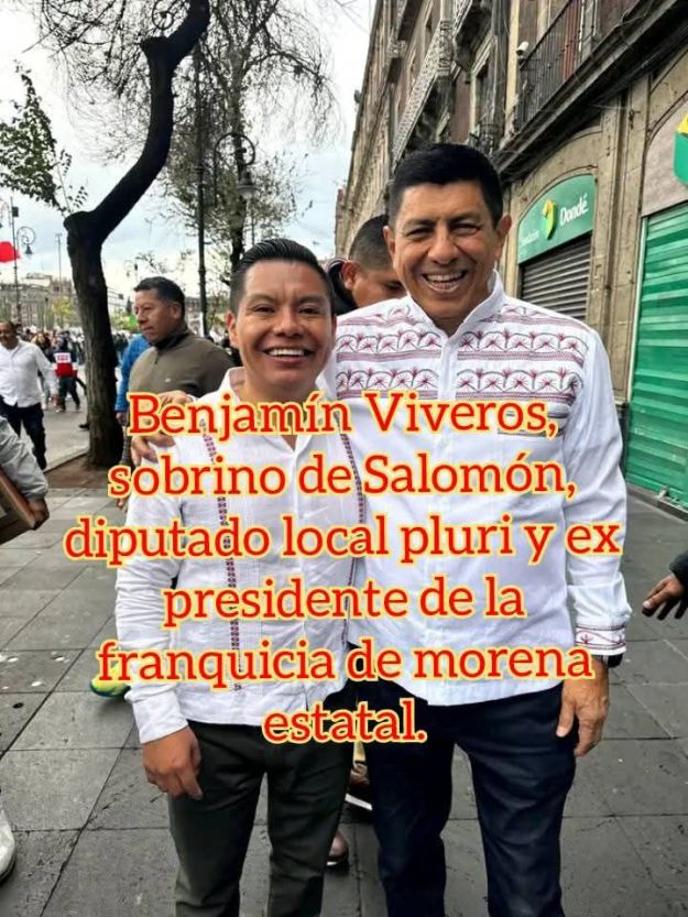 Sheila Bolaños, sobrina, directora de Administración en el gobierno estatal; Lourdes Bolaños, sobrina, aviadora en IMSS BIENESTAR; Irving López, sobrino, coordinador de giras; Katia Bolaños, sobrina, directora de licencias, Tanía Caballero nuera, diputada, esposa de Shabin Jara, sueldo de 28 mil pesos mensuales. Hasta ahora por 6 años; Bxido Jara Bolaños, hija, secretaria de Pueblos Indígenas a nivel nacional por Morena (partido de muerte); Benjamín Viveros, diputado local, presidente de la Junta de Coordinación Política de la LVI Legislatura Local (Jucopo), con las mejores percepciones en el Congreso, 400 mil pesos mensuales; Enmanuel Jara, sobrino, nuevo presidente estatal de Morena, y próximo diputado local en la próxima legislatura y Shabin Jara Bolaños, hijo, contratista del gobernador estatal y secretario de organización de Morena y próximo dirigente estatal de este partido y diputado local o federal; Noé Jara Cruz, hermano, secretario de gobierno del municipio de Oaxaca de Juárez.