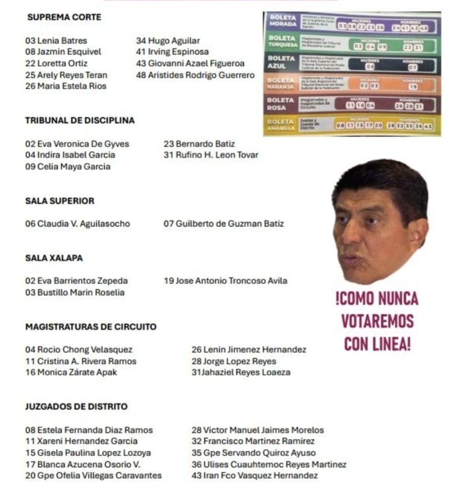 YA ESTAN DEFINIDOS LOS JUECES, MAGISTRADOS Y MINISTROS, DOS SEMANAS ANTES D ELA ELECCION.