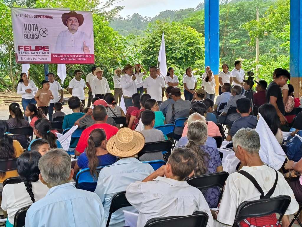 El próximo domingo se espera su cierre de campaña, se espera un lleno total y veremos el preámbulo de lo que debería ser un mero trámite el día de la elección, ya que nomás se espera que el pueblo ratifique en las urnas este respaldo de su gente, pues seguramente el amigo Felipe Reyes Santiago, será sin duda el próximo presidente Municipal de Candelaria Loxicha.